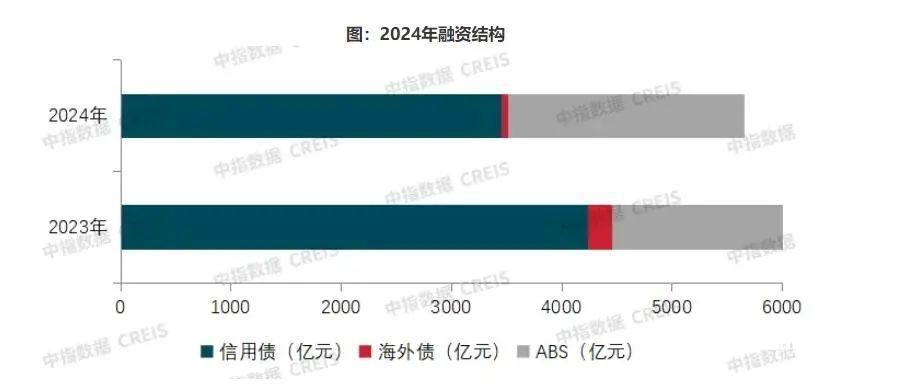 2024年以来,房企融资支持政策持续宽松,融资工具更加丰富,债券融资规模延续下降态势,信用债、ABS成为绝对主力。